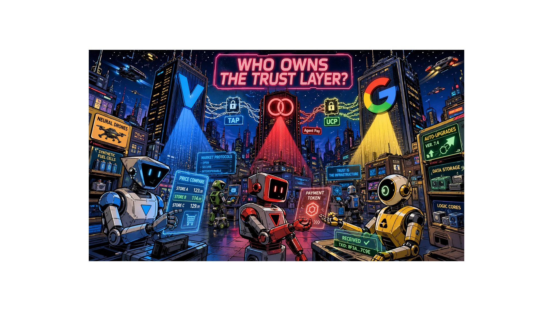 Diese Schicht—die Vertrauensschicht—ist der eigentliche Wettbewerbsgegenstand. Visa, Mastercard und Google bauen sie gerade auf, und jeder mit einer anderen strategischen Logik.