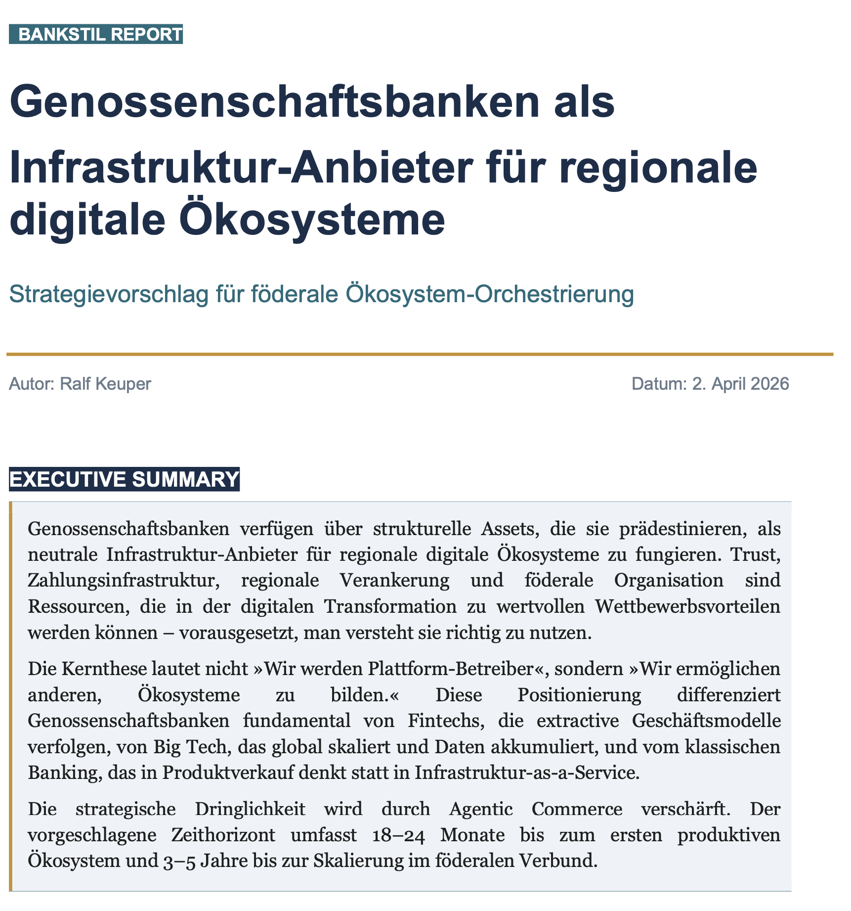 Der komplette Report und die dazugehörige Präsentation steht nur Abonnenten des Bankstil-Blogs zur Verfügung. Ähnliche Beiträge: Bankstil-Report: Bankenspezifische LLMs Die Bankenbranche steht vor einer weiteren Phase der digitalen Transformation,… Bankstil-Report Agentische KI im Banking KI-Agenten transformieren das Banking fundamental. Dieser Report analysiert die technologischen,… Beitragsnavigation Bankstil-Report Agentische KI im Banking