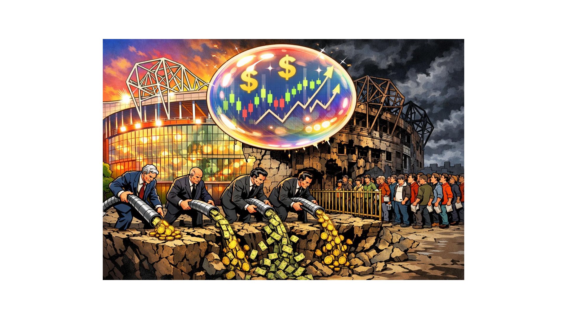 Der Nie­der­gang von Man­ches­ter United ist mehr als eine sport­li­che Kri­se – er ist ein Lehr­stück über die selbst­zer­stö­re­ri­sche Dyna­mik, die ent­steht, wenn Finanz­lo­gik die Eigen­ge­setz­lich­keit einer Insti­tu­ti­on über­wäl­tigt. Was als Wert­schöp­fung erscheint, ent­puppt sich als Sub­stanz­ver­zehr. Und was als Inves­ti­ti­on gilt, folgt der Logik eines Schnee­ball­sys­tems: eine Wet­te auf eine Zukunft, die so nicht mehr ein­tre­ten wird.